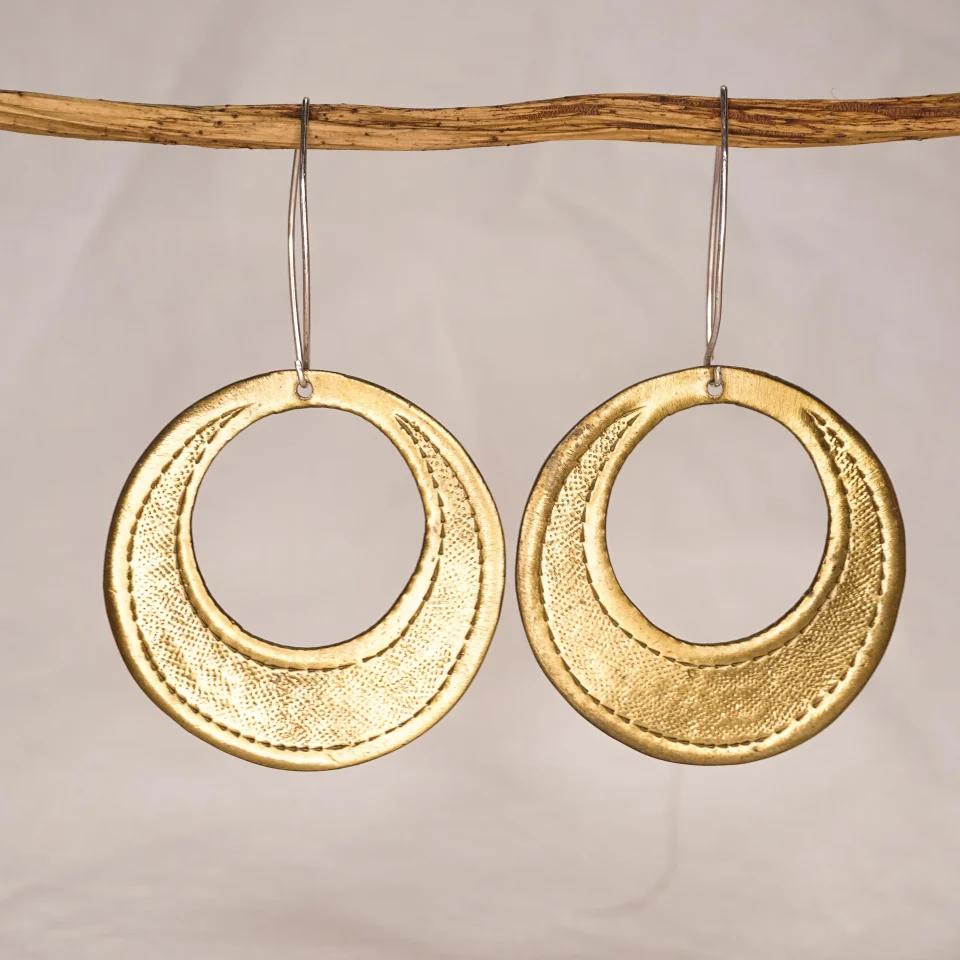 Khuyên tai đồng Mặt Trời Tia gợi vầng sáng lan tỏa, dáng tròn khắc vân thủ công đầy sống động. Một điểm nhấn mạnh mẽ nhưng vẫn thanh lịch, đủ để gương mặt bừng sáng.