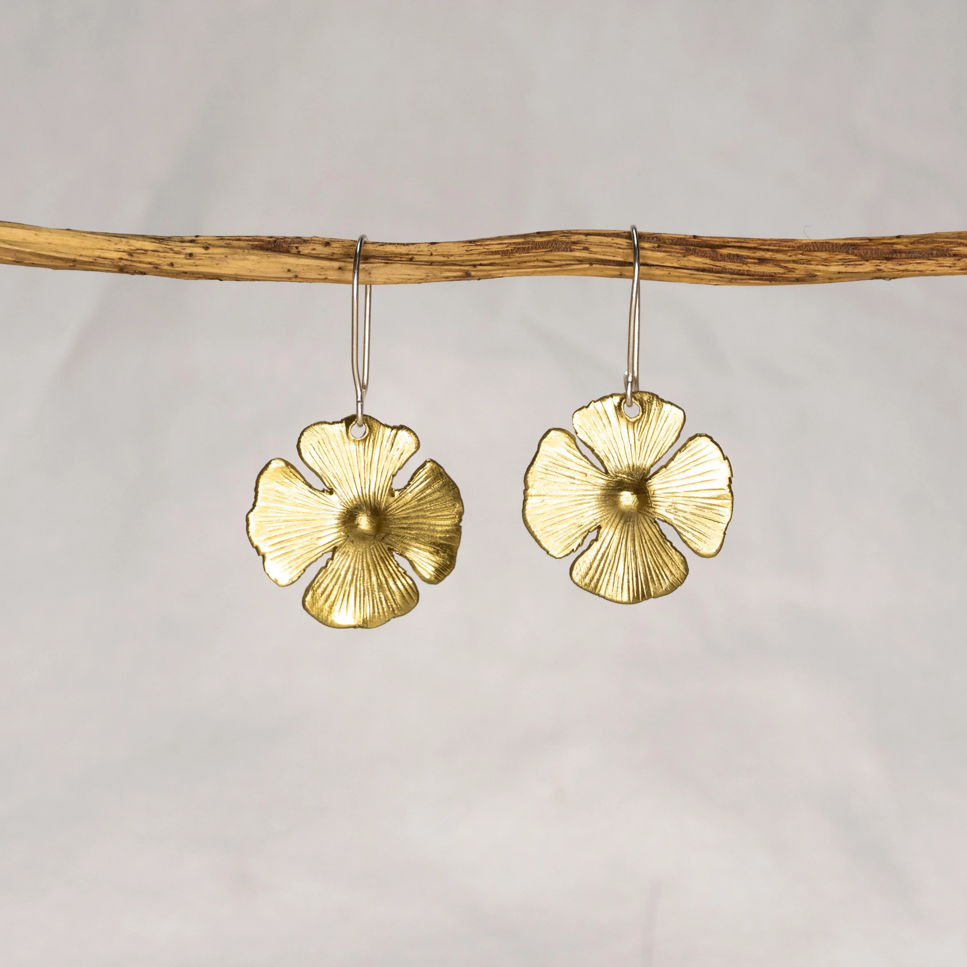 Khuyên tai đồng Gingko mang dáng lá ngân hạnh cổ điển, gò thủ công với những vân nổi sống động. Khi đi cùng vòng cổ Gingko đồng bộ, vẻ thanh lịch trở nên trọn vẹn và đầy ấn tượng.