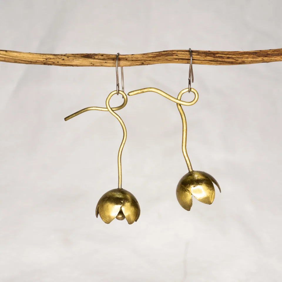 Khuyên tai đồng Hoa sen rủ xuống khẽ khàng, giữ một vẻ thanh tịnh khó gọi tên. Thủ công tỉ mỉ, từng cánh sen đồng trở thành khoảng lặng dịu dàng giữa nhịp sống vội.