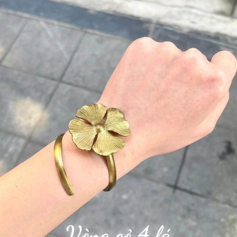 Vòng tay đồng lá Ginkgo mang cảm hứng từ Hà Nội xưa, thủ công khắc vân lá tinh tế. Hoàn thiện satin mờ, dễ phối cùng lụa, linen hay áo dài, vừa thanh lịch vừa có câu chuyện patina theo thời gian.
