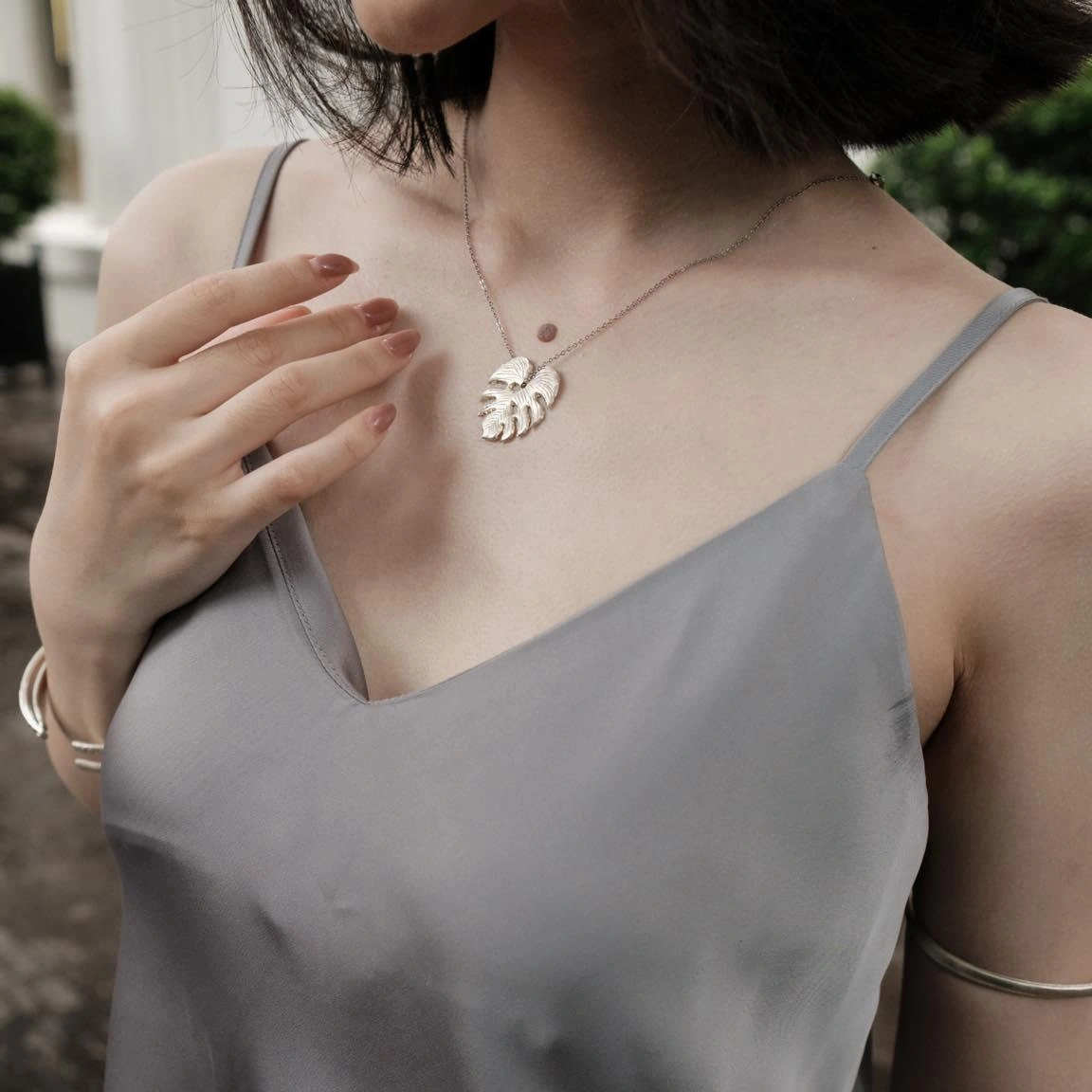 Dây chuyền Lá Monstera hợp với những ngày bạn muốn mang theo một dấu ấn cá tính nhưng không ồn ào. Một buổi café trong ngõ nhỏ, một cuộc gặp nơi triển lãm nghệ thuật, hay một dạ tiệc tối giản – ở đâu nó cũng trở thành điểm nhấn vừa phóng khoáng, vừa thanh lịch.