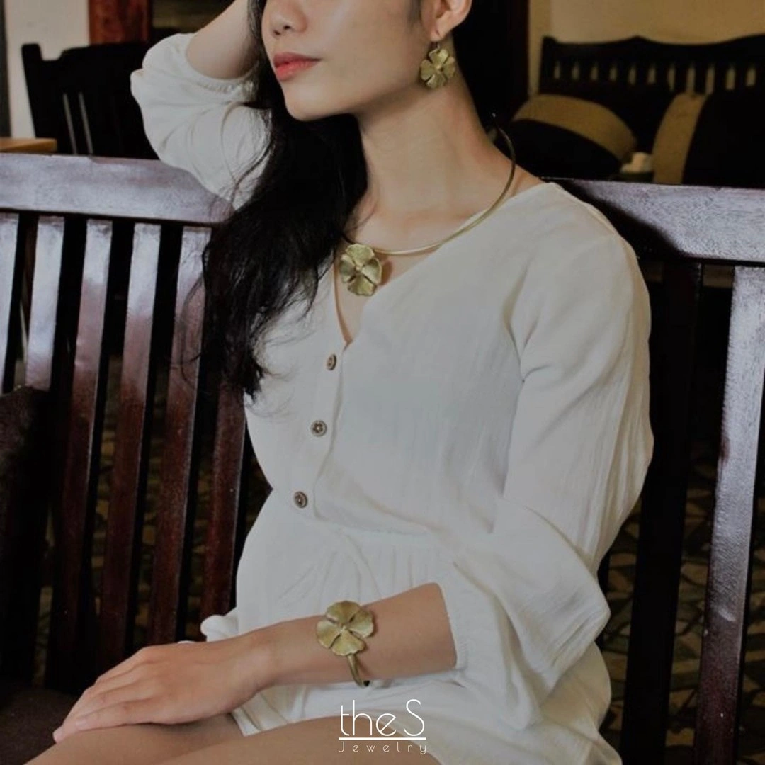 Khuyên tai đồng Cỏ 4 lá mang hơi thở thủ công tinh tế, gói ghém lời chúc may mắn và an yên. Một thiết kế vừa thanh lịch vừa gần gũi, dành cho người phụ nữ chọn nhịp sống chậm và giàu cảm xúc.