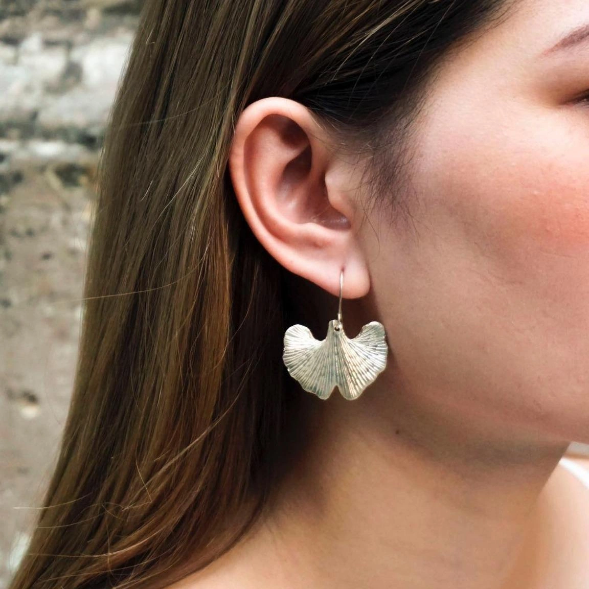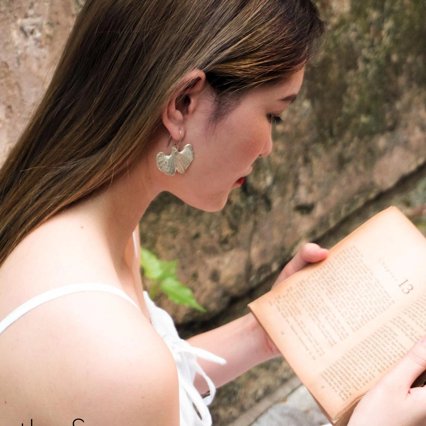 Lá Ginkgo từ lâu vẫn được xem là biểu tượng của sự trường tồn. Khi hoá thân trong kim loại, đôi Khuyên tai đồng Ginkgo giữ nguyên dáng lá mềm mại, từng vân khắc tay lan đều như hơi thở thời gian in dấu. Ánh đồng thủ công sáng vừa phải, không phô trương, chỉ nhấn nhẹ để gương mặt thêm phần thanh thoát.
