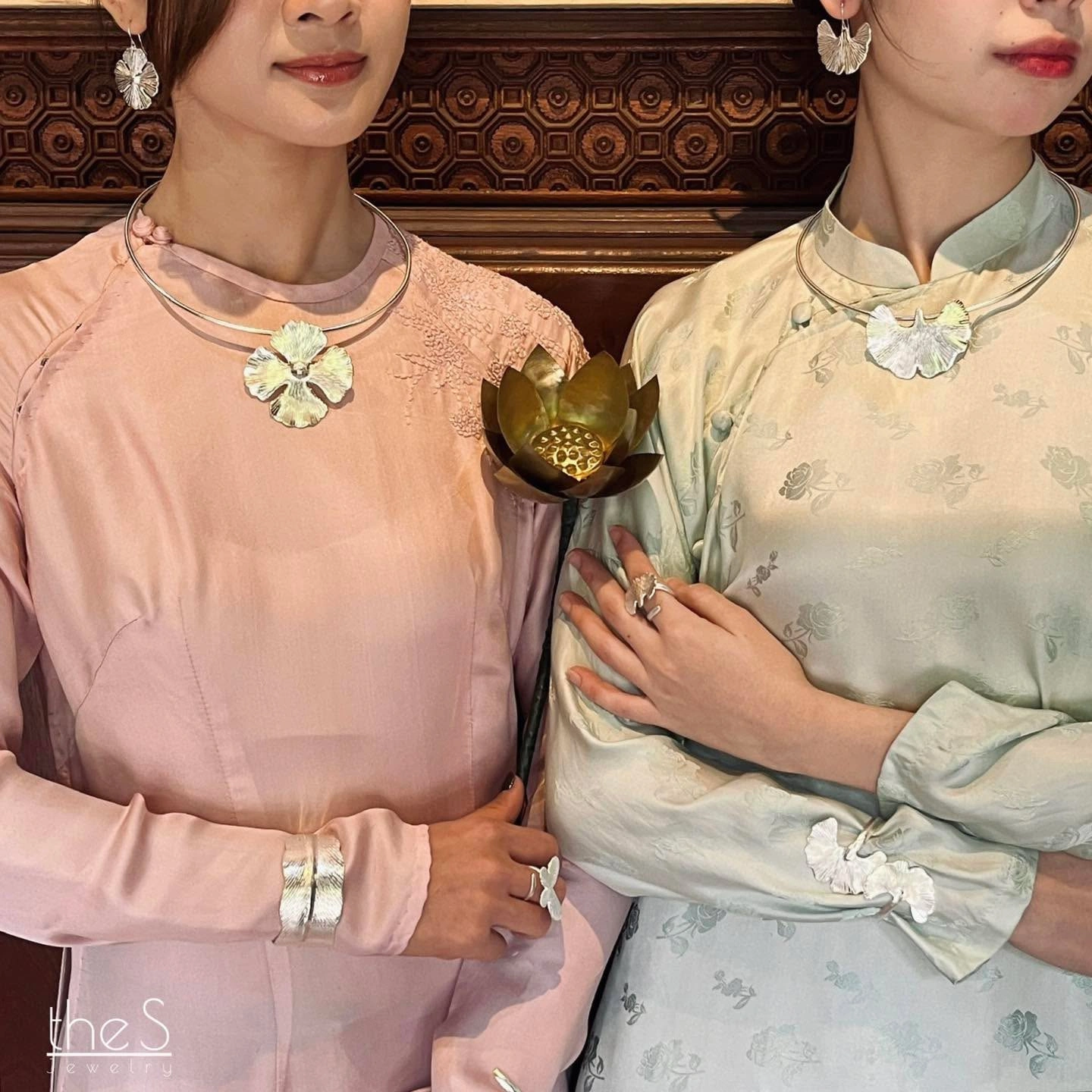 Kiềng đồng Gingko lấy hình lá bạch quả – biểu tượng của ký ức bền lâu – được gò thủ công bởi các nghệ nhân Hà Nội. Ánh vàng dịu ôm cổ, nữ phối áo dài thì trang nhã cổ điển, nam khoác sơ mi linen lại phóng khoáng hiện đại; một thiết kế unisex đủ tinh tế để đi làm, đi triển lãm, hay dạo phố chiều mùa thu.
