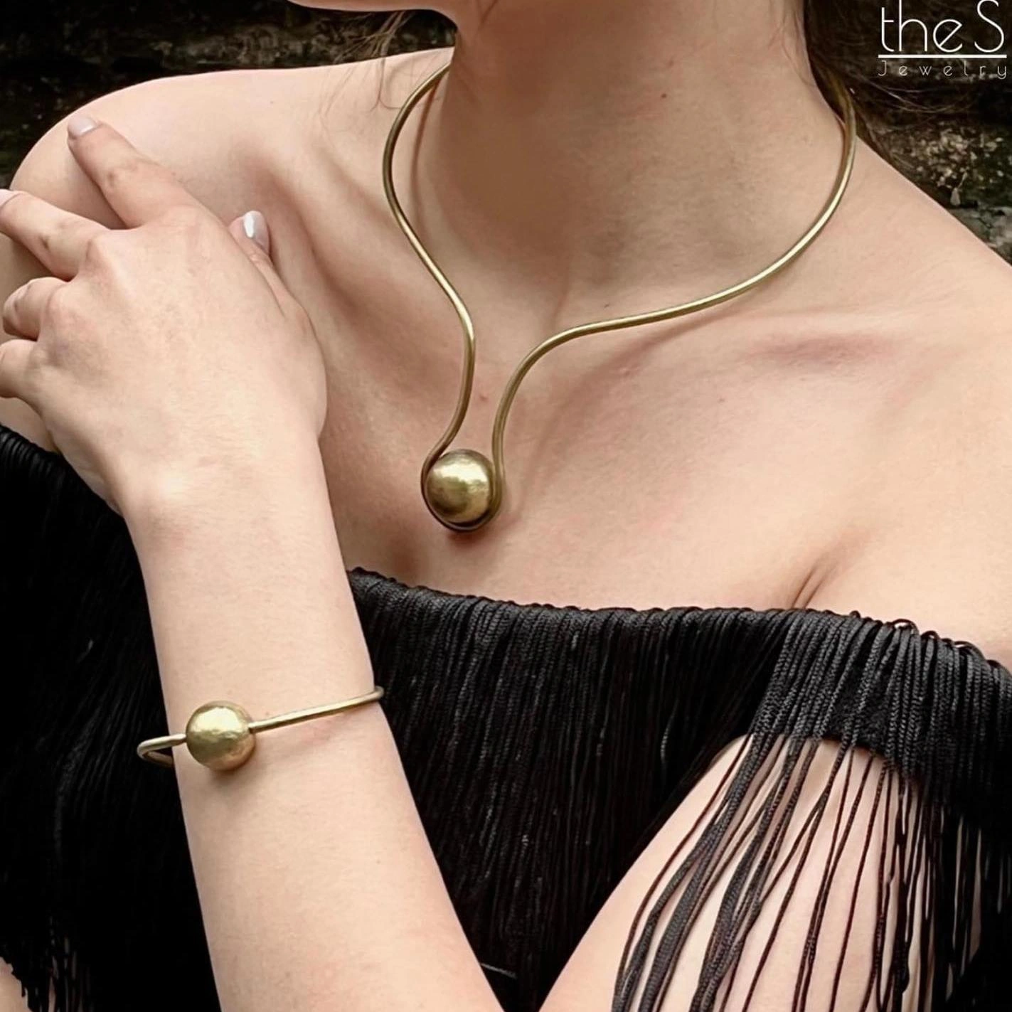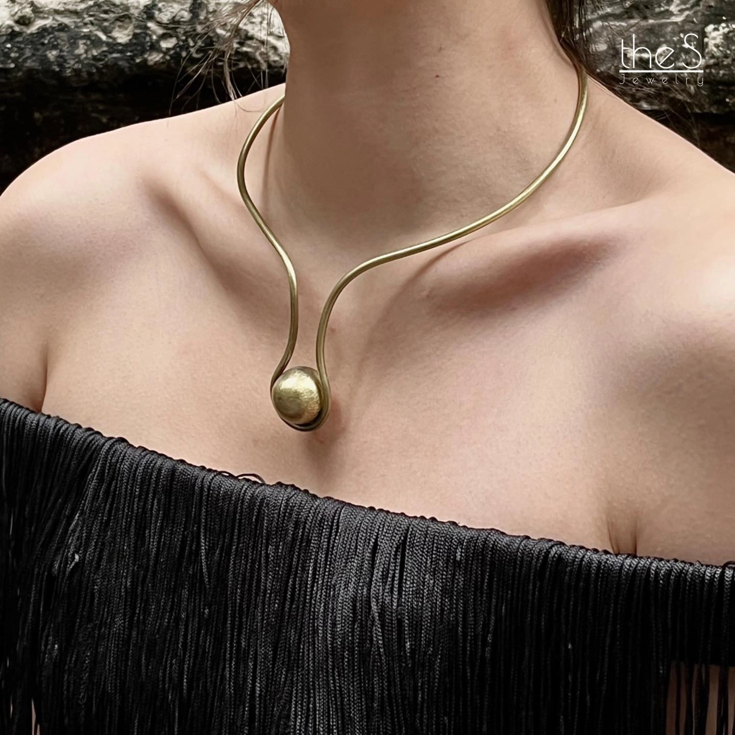 Kiềng đồng The Sun với khối cầu đồng đặt chính giữa, dáng vòng uốn lượn thủ công. Một thiết kế tối giản mà mạnh mẽ – gợi hình ảnh mặt trời rực rỡ và đầy năng lượng.