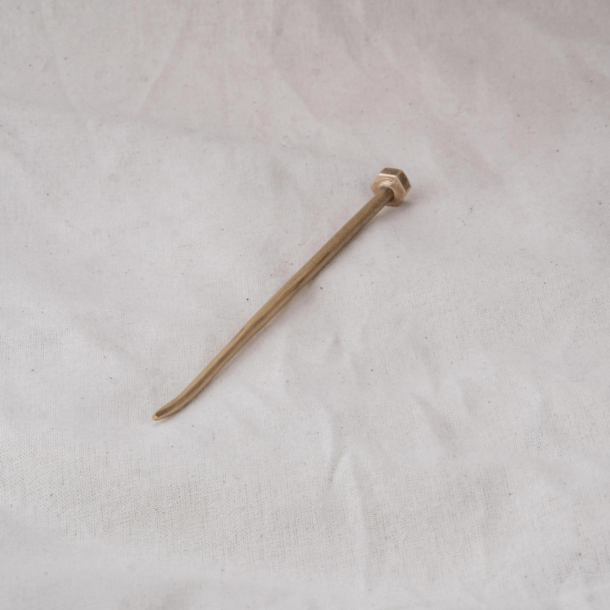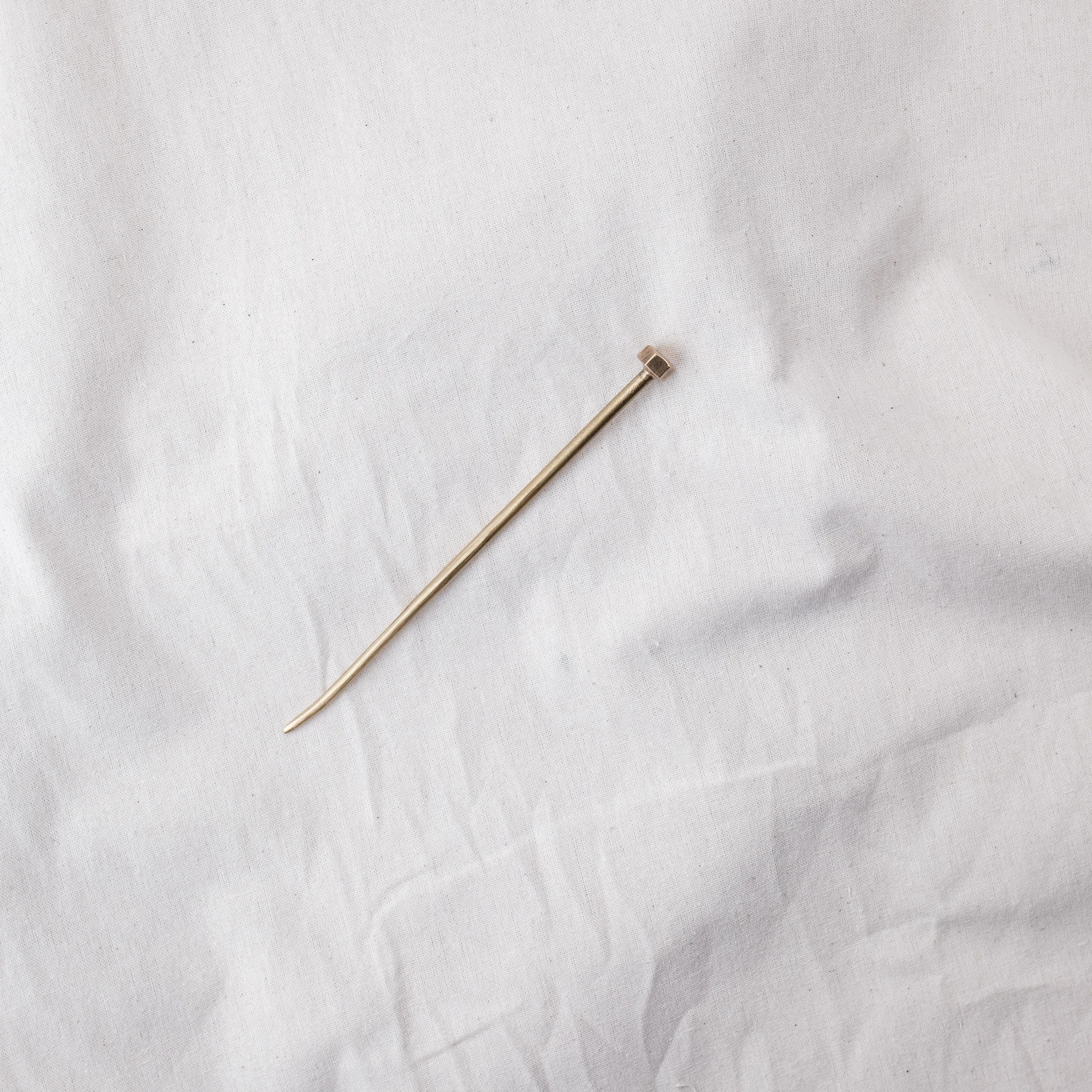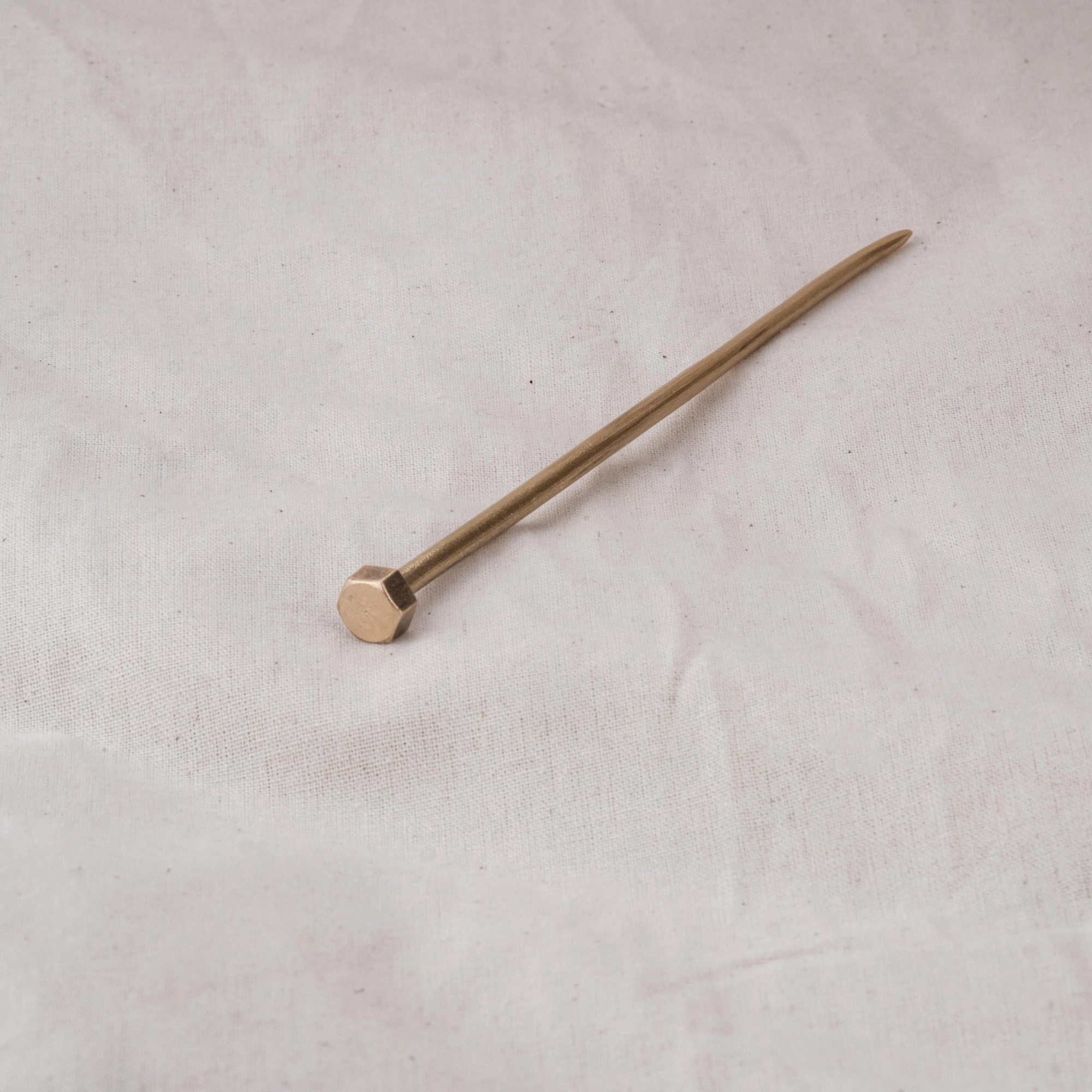 Trâm đầu bát giác với dáng thon mảnh, đầu trâm tạo khối hình học giản dị. Cài trên tóc, trâm gợi nét thanh tĩnh, tối giản mà vẫn đầy duyên ngầm.