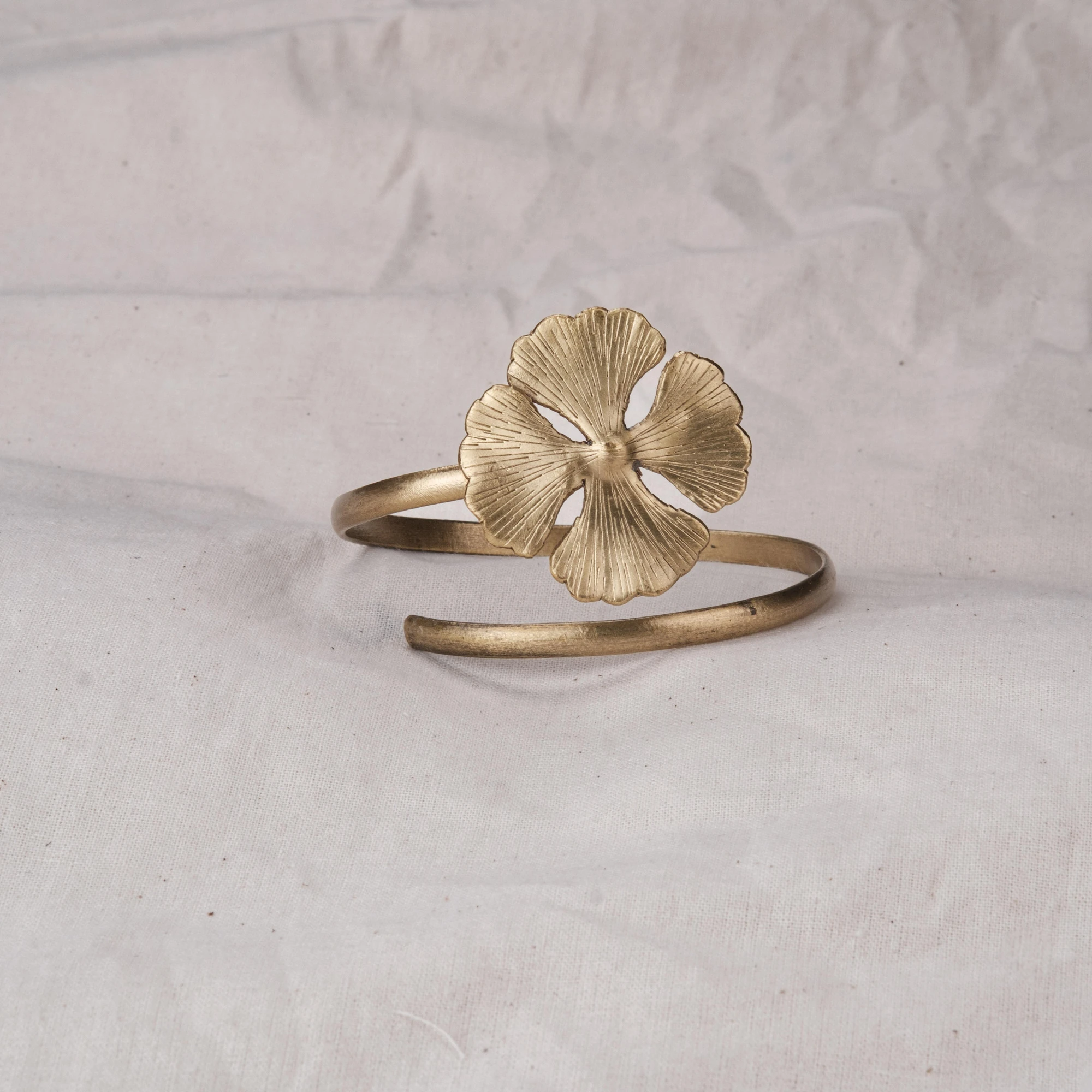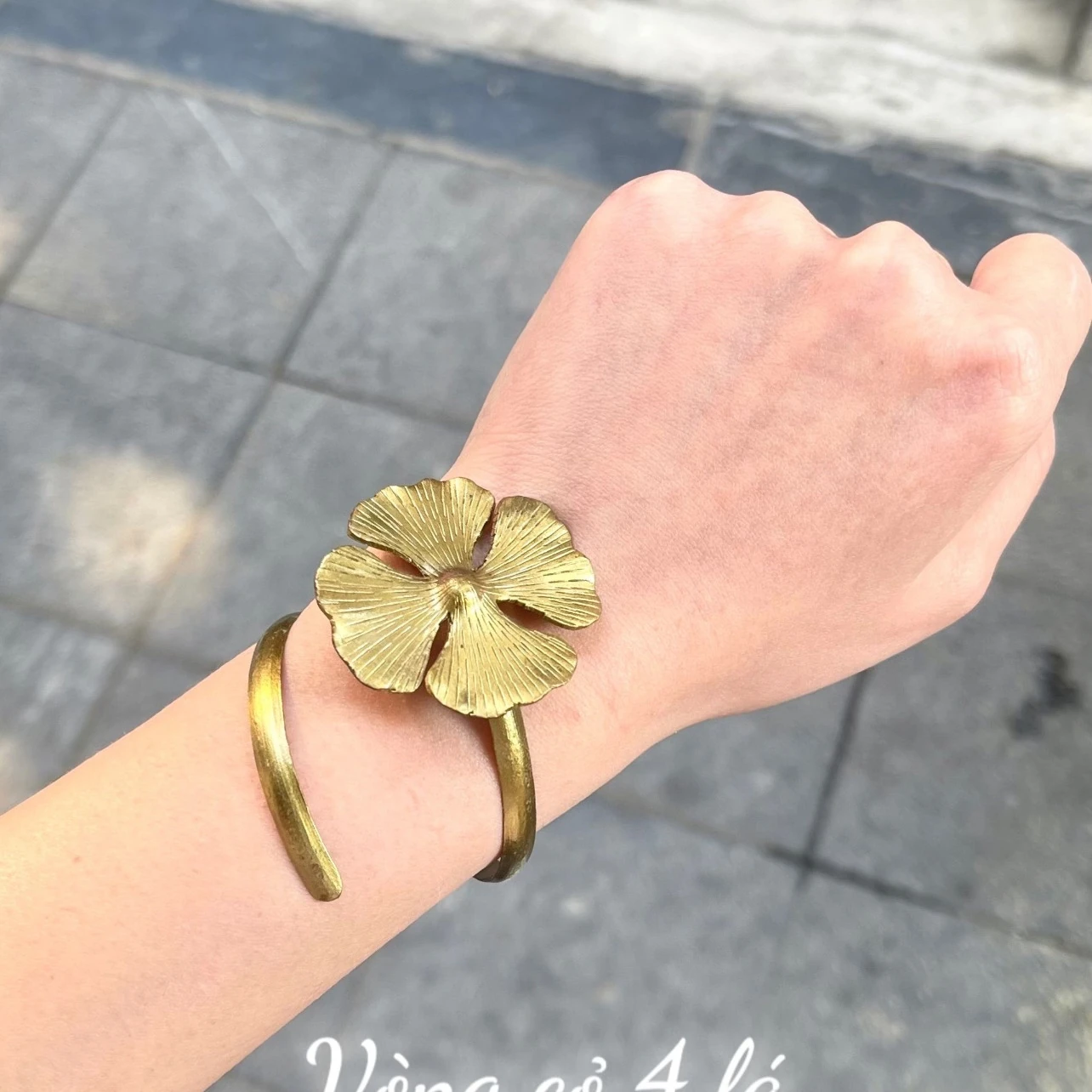 Vòng tay Cỏ 4 Lá với dáng mở tinh giản, điểm nhấn là bông cỏ bốn lá khắc tỉ mỉ. Đeo trên tay, vòng như một lá bùa nhỏ, gửi theo niềm tin và may mắn.