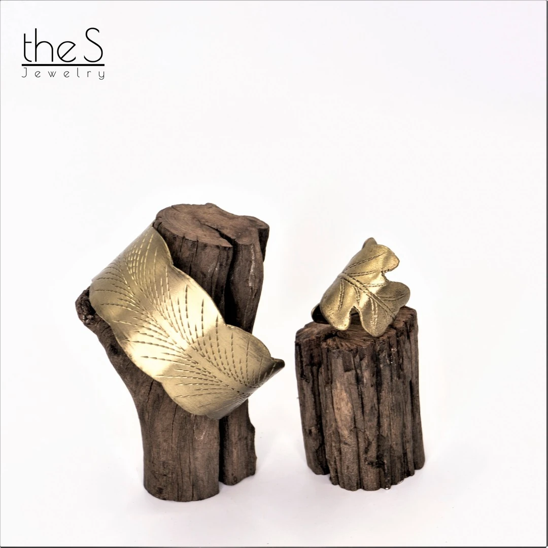 Có những thiết kế gợi nhớ đến thiên nhiên không bằng màu sắc rực rỡ, mà bằng sự giản dị tinh tế. Vòng tay đồng lá dài được khắc thủ công với những đường gân lá trải dọc, khiến bề mặt kim loại trở nên uyển chuyển, như thể một chiếc lá vừa rơi xuống, khẽ dừng lại trên cổ tay. Bản cuff rộng, ôm lấy tay một cách dứt khoát nhưng vẫn giữ được sự mềm mại, cân bằng giữa mạnh mẽ và thanh thoát.
