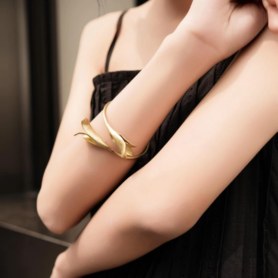 Hoa lan từ lâu được coi là biểu tượng của sự sang trọng và vẻ đẹp quý phái. Trên chiếc Vòng tay Lan Hoa, hình dáng ấy được tái hiện bằng những đường uốn cong thanh thoát, nụ hoa và chiếc lá nhỏ vươn ra như đang khẽ xoè. Khi ôm lấy cổ tay, vòng vừa mềm mại, vừa tạo một đường nét mạnh mẽ đầy cá tính.