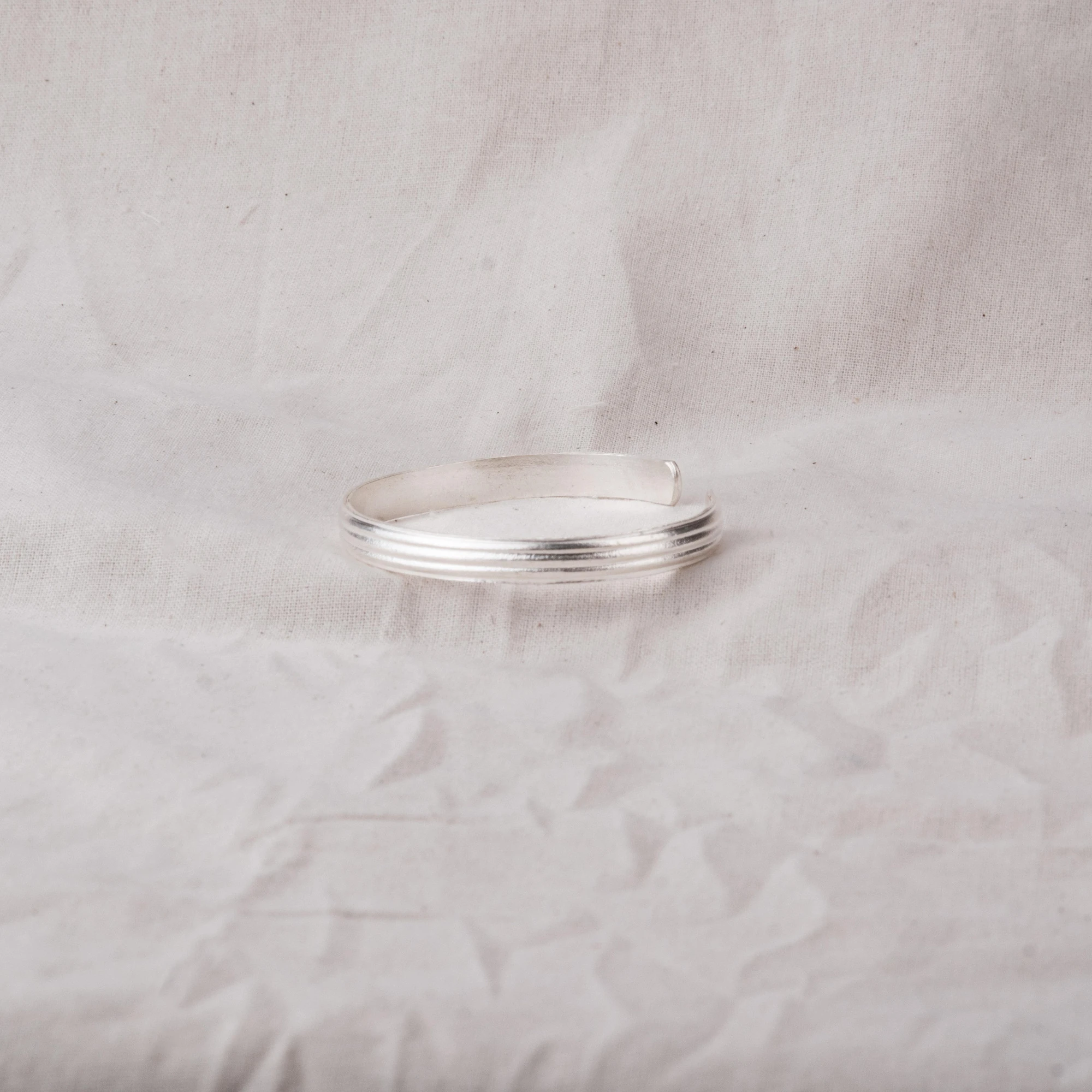 Có những vẻ đẹp không ồn ào mà vẫn khiến ta ngẩn ngơ, như mây buổi sớm phủ mờ sông Hồng, hay áng chiều vắt ngang trời Hà Nội. Vòng tay vân mây được khắc những đường vân mềm, thoáng, gợi hình ảnh mây trời phiêu lãng. Dáng vòng mở bản vừa, ôm lấy cổ tay mà không gò bó, để người đeo như mang theo một khoảng trời riêng dịu dàng bên mình.