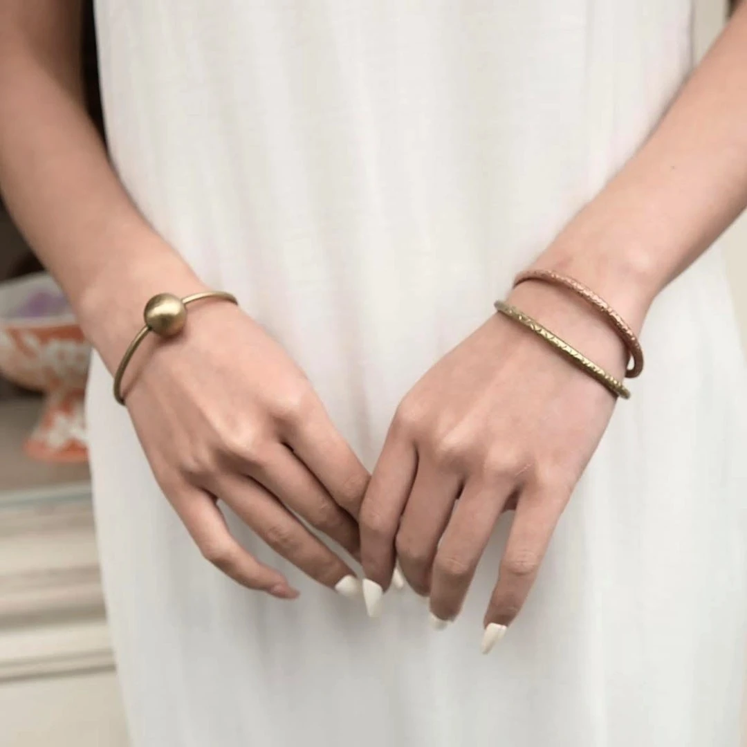 Cá là biểu tượng của sự dẻo dai, may mắn và sinh sôi. Hoạ tiết vảy cá li ti trên chiếc Vòng tay Vảy Cá được khắc nổi thủ công, đều đặn nhưng vẫn giữ sự tự nhiên, như ánh nước gợn trên mặt hồ. Dáng vòng tròn ôm cổ tay, gọn gàng và dễ kết hợp, khiến nó trở thành một chi tiết vừa giản dị, vừa cá tính.